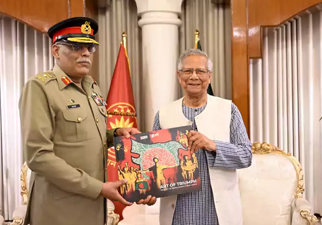 యూనస్ అధికారం చేపట్టిన దగ్గరినుంచి పాక్-బంగ్లా దగ్గరవుతున్నాయి. దీనిలో భాగంగా పాకిస్థాన్ జాయింట్ చీఫ్స్ ఆఫ్ స్టాఫ్ కమిటీ ఛైర్పర్సన్ జనరల్ షంషాద్ మీర్జా ఇటీవల బంగ్లాలో పర్యటించారు. ఆ సందర్భంగా యూనస్-మీర్జా భేటీ అయ్యారు. అప్పుడు పాక్ జనరల్కు యూనస్ ‘Art of Triumph’ పేరిట ఉన్న పుస్తకాన్ని బహూకరించారు. ఆ బుక్ కవర్ పేజీపై వక్రీకరించిన బంగ్లాదేశ్ మ్యాప్ కనిపించింది. భారత్కు చెందిన ఏడు ఈశాన్య రాష్ట్రాలు అందులో భాగంగా కనిపించడం తీవ్ర ఆగ్రహానికి దారితీసింది. భారత సార్వభౌమత్వానికి వ్యతిరేకంగా ఉన్న ఆయన చర్యలను నెటిజన్లు తీవ్రంగా ఖండించారు.
