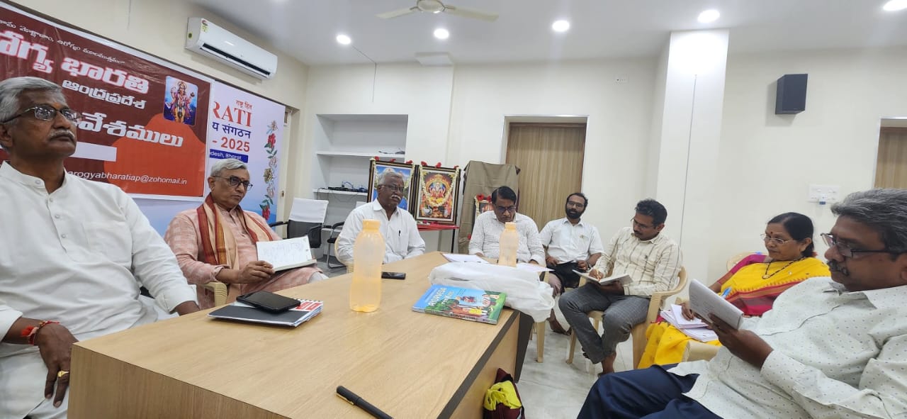 ఆరోగ్య భారతి రాష్ట్ర కార్యవర్గ సమావేశం అక్టోబర్ 26 ఆదివారం నాడు గుంటూరులో అరండల్ పేటలోని యోగిభవన్లో జరిగింది. ఈ కార్యక్రమానికి అఖిలభారత సహ సంఘటన కార్యదర్శి డాక్టర్ మురళీకృష్ణ గారు క్షేత్ర సంఘటన కార్యదర్శి శ్రీ కుమారస్వామి గారు పాల్గొన్నారు. అలాగే రాష్ట్ర అధ్యక్షులు డాక్టర్ పి ఎస్ రావు గారు రాష్ట్ర కార్యదర్శి డాక్టర్ రామ్ శర్మగారు సంఘటన కార్యదర్శి డాక్టర్ కాకాని పృథ్వీరాజు సహకార దర్శి డా. ఏవియల్ నారాయణ, శ్రీమతి కామేశ్వరి గారు, డాక్టర్ శ్రీనివాస్ రెడ్డి గారు, శ్రీ తిలక్, కోశాధికారి శ్రీ శంకర్ నారాయణలు పాల్గొన్నారు.