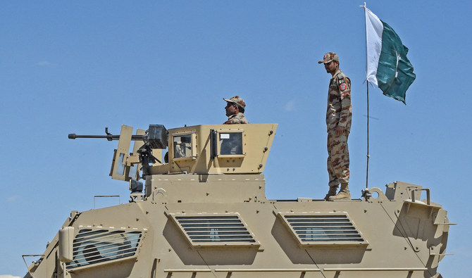 Security personnel of Pakistan's Frontier Corps stand on an armoured vehicle near the newly inaugurated Badini†Trade†Terminal†Gateway, a border crossing point between Pakistan and Afghanistan at the Pakistan's border town of Qila Saifullah in the southwestern province of Balochistan on September 16, 2020. (Photo by Banaras KHAN / AFP)