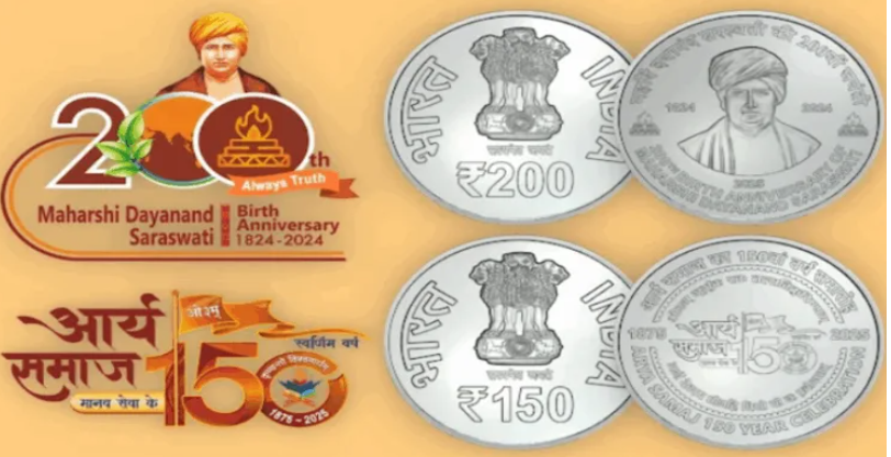 భారతదేశంలో అత్యంత ప్రభావవంతమైన సంస్కరణవాద ఉద్యమాలలో ఒకటైన ఆర్య సమాజ్ 150 సంవత్సరాల వేడుకలను పురస్కరించుకుంది. ఈ సందర్భంగా మోడీ ప్రభుత్వం 150 రూపాయల చారిత్రాత్మక స్మారక నాణెంను విడుదల చేసింది.