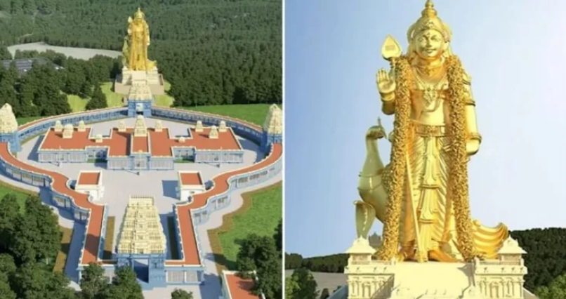 నార్త్ కరోలినా, US,: నార్త్ కరోలినా లోని అతిపెద్ద హిందూ సమూహం అయిన ట్రయాంగిల్ ప్రాంతంలో ఒక ఆలయాన్ని నిర్మాణమవబోతోంది. హిందువుల పవిత్ర దేవుడు, ముఖ్యంగా తమిళలు ఆరాధ్యుడు అయిన భగవాన్ మురుగన్ కి సంబంధించిన అతిపెద్దదయిన విగ్రహాన్ని ప్రతిష్టించబోతున్నారు. ఇది ప్రపంచంలోనే అతిపెద్ద విగ్రహం. 130 ఎకరాలు ఉన్న ఈ ప్రాంతంలో 155 అడుగుల పొడవు, 35 అడుగుల పునాదిపై అమర్చబడి ఉంటుంది. అంటే మొత్తం 190అడుగుల ఎత్తులో విగ్రహం ఉంటుంది. చేతిలో వేల్ ధరించిన యోధుడి రూపంలో ఈ విగ్రహాన్ని రూపొందించారు. అంతేకాకుండా ఇక్కడే లైబ్రరీ, మ్యూజియం ను, వివాహవేదిక, కమ్యూనిటీ గార్డెన్ లాంటివి కూడా రూపొందించనున్నారు.