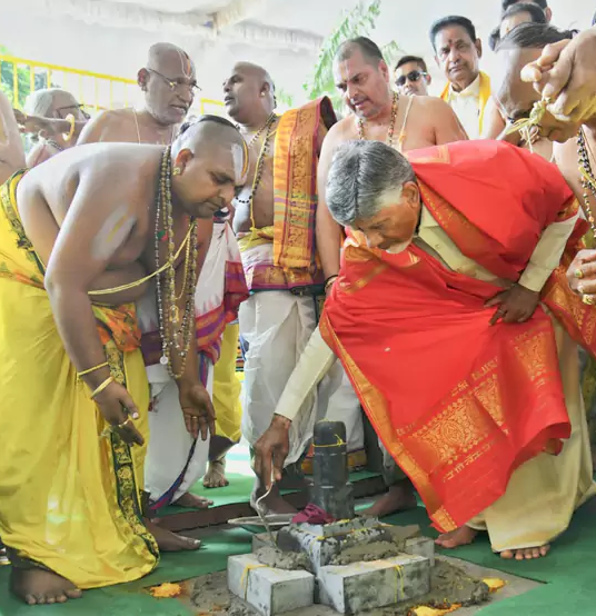 దేవతల రాజధాని ఎలా ఉంటుందో.. అదే నమూనాతో ఏపీ రాజధాని అమరావతి ఉంటుందని సీఎం చంద్రబాబు అన్నారు. రాజధాని కోసం రైతులు 33వేల ఎకరాలు స్వచ్ఛందంగా ఇచ్చారని, పవిత్ర కార్యక్రమానికి రైతులు సహకరించారని అభినందించారు. అమరావతిలోని వెంకటపాలెంలో వేంకటేశ్వరస్వామి ఆలయ విస్తరణకు సీఎం చంద్రబాబు గురువారం భూమిపూజ చేశారు. రూ.260 కోట్లతో రెండు దశల్లో పనులు చేపట్టనున్నారు. ఆలయ ప్రాకారం, మహారాజగోపురం, ఆంజనేయస్వామి ఆలయాలు నిర్మించనున్నారు. మాడవీధులు, అన్నదాన కాంప్లెక్స్ నిర్మాణాలకు సీఎం శంకుస్థాపన చేశారు.