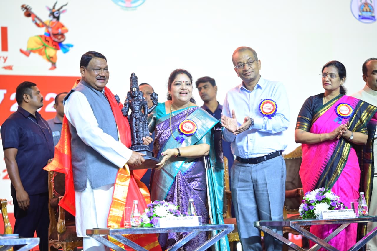 గిరిజనుల అభివృద్ధికోసం రాష్ట్ర ముఖ్యమంత్రి చంద్రబాబు కృషి చేస్తున్నారని ఉద్భవ్ -2025 వేదికగా మంత్రి సంధ్యారాణి వెల్లడించారు. వెనుకబడిన వర్గాలకు సీఎం నాయకత్వంలోని రాష్ట్ర ప్రభుత్వం వెన్నుదన్నుగా నిలుస్తోందన్నారు. గిరిజన చిన్నారులు కూడా డాక్టర్లు, ఇంజినీర్లు, టీచర్ల వంటి గొప్ప చదువు చదవడమే కాకుండా మంచి పౌరులుగా నిలవాలన్నారు. గెలుపు ముఖ్యమే..కానీ ఓటమికి మాత్రం భయపడకూడదంటూ ప్రసంగంతో స్ఫూర్తి నింపారు. ఈ సందర్భంగా ఆమె మాట్లాడుతూ ఏపీలోని గిరిజన బిడ్డల చదువు, పాఠశాల వసతులకు మరిన్ని నిధులివ్వాలని కేంద్రమంత్రి ఓరమ్ కు విన్నవించారు. గిరిజనులుండే రిమోట్ ఏరియాలో రోడ్డు నిర్మాణం, అనుసంధానానికి ప్రాధాన్యమివ్వాలని కోరారు. ఏపీకి మరిన్ని ఈఎంఆర్ఎస్ స్కూళ్లను మంజూరు చేయాలన్నారు