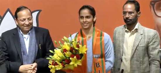 24 అంతర్జాతీయ టైటెల్స్ గెలుచుకున్న సైనా నెహ్వాల్ 2009లో వరల్డ్ నంబర్ 2, 2015లో వరల్డ్ నంబర్ 1 ఛాంపియన్గా నిలిచి రికార్డు సృష్టించారు. హరియాణాలో జన్మించిన సైనా.. హైదరాబాద్లోని జాతీయ బ్యాడ్మింటన్ కోచ్ పుల్లెల గోపీచంద్ వద్ద శిక్షణ తీసుకొని విజయవంతమైన క్రీడాకారిణిగా ఎదిగారు. 2015లో ప్రపంచంలోనే నంబర్ వన్ ర్యాంకింగ్ మహిళా షట్లర్గా రికార్డు సృష్టించారు. ప్రస్తుతం అంతర్జాతీయ బ్యాడ్మింటన్లో తొమ్మిదో ర్యాంకులో కొనసాగుతున్న సైనా 2018లో తోటి క్రీడాకారుడైన పారుపల్లి కశ్యప్ను వివాహం చేసుకున్నారు. గతేడాది ప్రముఖ క్రీడాకారులు గౌతం గంభీర్, బబితా ఫొగాట్ తదితరులు కమల దళంలో చేరిన విషయం తెలిసిందే.