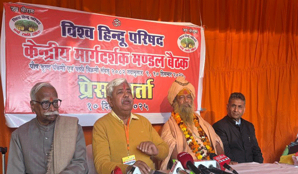 ఢిల్లీలోని బాబానాథ సింగ్ ప్రాంతంలో విశ్వహిందూ పరిషత్ కేంద్రీయ మార్గదర్శక్ మండల్ సమావేశాలు ముగిశాయి. రెండు రోజుల పాటు జరిగిన ఈ సమావేశాలు విజయవంతం అయ్యాయని VHP అంతర్జాతీయ అధ్యక్షులు అలోక్ కుమార్ ప్రకటించారు.ఈ సమావేశాలకు 225 మంది సాధు సంతులు హాజరయ్యారని తెలిపారు. భారత రాజ్యాంగంలో మతపరంగా వున్న మైనారిటీలకు ప్రత్యేక హక్కులిచ్చిందని, కానీ.. ఆశ్చర్యంగా రాజ్యాంగం మతపరమైన మైనారిటీకి నిర్వచనం మాత్రం ఇవ్వలేదన్నారు.