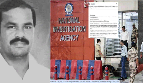 2019 లో జాతీయవాది రామలింగం హత్య కేసులో కీలక పరిణామం సంభవించింది. తమిళనాడులో జరిగిన ఈ దారుణ హత్యకి సంబంధముండి, పరారీలో వున్న ఇద్దరు నేరస్థులను, వారికి ఆశ్రయం కలిగించిన మరో ముగ్గురు అరెస్ట్ అయ్యారు. ఈ విషయాన్ని జాతీయ దర్యాప్తు బృందం ప్రకటించింది.అరెస్ట్ అయిన వారిలో మహ్మద్ బుర్హానుద్దీన్, మహ్మద్ నబిల్ హసన్ వున్నారు. రామలింగం హత్య జరిగినప్పటి నుంచి ఏడు సంవత్సరాలుగా పరారీలోనే వున్నారు.