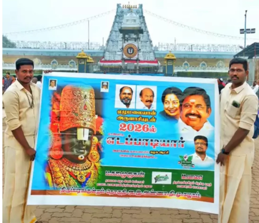 ‘‘తమిళనాడుకు చెందిన భక్తులు శ్రీవారి ఆలయ పరిసరాల్లో రాజకీయ నేతల ఫొటోలతో ఉన్న బ్యానర్ను ప్రదర్శించారు. టిటిడి నిబంధనలకు విరుద్ధంగా వ్యవహరించినట్లు మా దృష్టికి వచ్చింది. ఆ బ్యానర్ను ప్రదర్శించడమే కాకుండా రీల్స్ తీసి సోషల్ మీడియాలో పోస్ట్ చేసినట్లు తెలిసింది. సదరు వ్యక్తులపై చట్టపరమైన చర్యలు తీసుకుంటాం’’ అని టిటిడి సీపీఆర్వో ఓ ప్రకటనలో తెలిపారు.