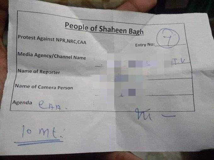 తమ అనుమతి లేకుండా షహీన్ భాగ్ లోకి ఎవ్వరినీ అనుమతించటం లేదు. చివరికి మీడియా వారికి కూడా పాసులిచ్చి, అలా పాసులున్న వారినే అనుమతిస్తున్నారు. అలాంటి పాసులేమీ లేకుండా వెళ్ళిన సీనియర్ పాత్రికేయుడు దీపక్ చౌరాసియాపై కూడా ఆందోళనకారులు దాడి చేసిన విషయం తెలిసిందే.