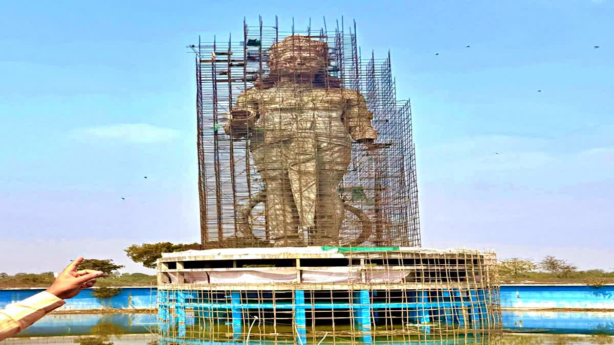 ‘అత్యంత ప్రతిష్టాత్మకంగా నిర్మిస్తున్న ఈ విగ్రహానికి సంబంధించిన పనులు ఇప్పటికే 60 శాతం పనులు వరకు పూర్తయ్యాయి. విగ్రహం ఎత్తు దృష్ట్యా, ఇది చాలా దూరం నుంచే పర్యాటకుల దృష్టిని ఆకర్షిస్తుంది. విగ్రహం ఉపరితలంపై అక్రిలిక్ పెయింట్ను వేయనున్నారు’ అని అధికారులు తెలిపారు. శిల్పి జతిన్ కుమార్ ప్రకారం, ఈ విగ్రహాన్ని ‘మెయింటెనెన్స్ ఫ్రీ’ (నిర్వహణ అవసరం లేని) ప్రాతిపదికన నిర్మిస్తున్నారు. ఈ విగ్రహ నిర్మాణానికి 178 క్యూబిక్ మీటర్ల కాంక్రీట్, 140 టన్నుల ఇనుమును ఉపయోగించారు. విగ్రహం మొత్తం బరువు 281 టన్నులు. మే నాటికి ఈ పనులు పూర్తవుతాయని అంచనా. హనుమాన్ విగ్రహం సరస్సు మధ్యలో ఉన్నందున, విగ్రహం వద్దకు చేరుకోవడానికి బోటు ఏర్పాటు చేస్తారు. లేజర్ షోతో సహా పర్యాటక కేంద్రంలో అనేక ముఖ్యమైన నిర్మాణాలు చేయనున్నారని అధికారులు తెలిపారు.