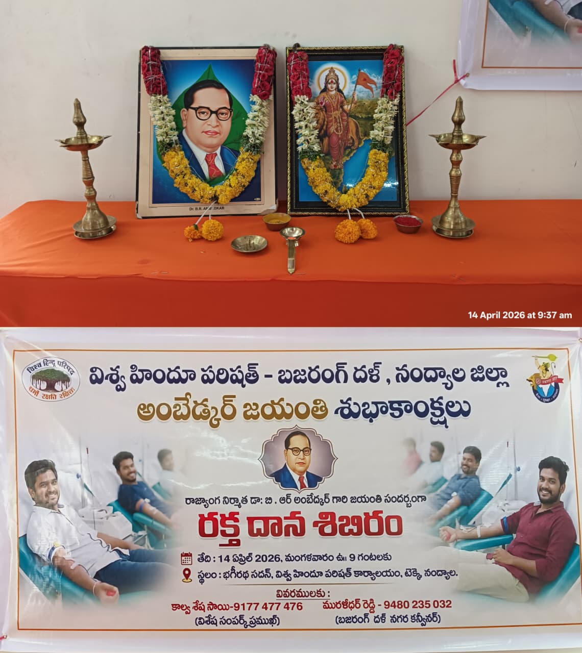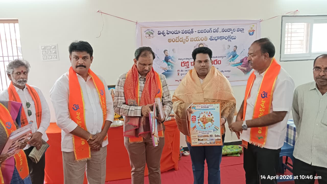భారత రాజ్యాంగ నిర్మాత డా. బి.ఆర్. అంబేద్కర్ జయంతిని నంద్యాల జిల్లాలో విశ్వహిందూ పరిషత్ ఆధ్వర్యంలో ఘనంగా నిర్వహించారు. జిల్లా విశ్వహిందూ పరిషత్ కార్యాలయం “భగీరథ సదన్”లో జరిగిన ఈ కార్యక్రమంలో బజరంగ్ దళ్ సభ్యులు కూడా పాల్గొన్నారు.