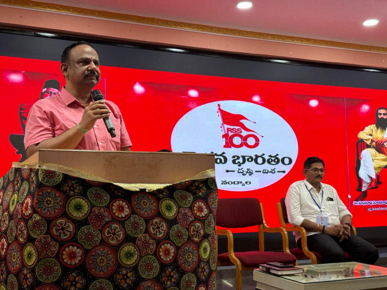 రాష్ట్రీయ స్వయంసేవక్ సంఘ్ శతాబ్ది కార్యక్రమాల్లో భాగంగా “వైభవ భారత్” పేరుతో ప్రముఖుల సమావేశం నంద్యాలలో ఘనంగా నిర్వహించబడింది. ఈ కార్యక్రమం శ్రీ రామకృష్ణ పీజీ కళాశాలలో ఆదివారం (ఏప్రిల్ 19) ఉదయం 8:30 గంటల నుంచి మధ్యాహ్నం 1 గంట వరకు జరిగింది.