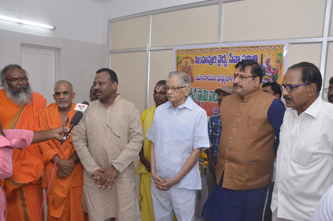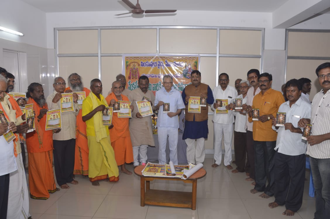 సింహపురి వైద్య సేవా సమితి మరియు యానాదుల ధర్మ జాగరణ వేదిక సంయుక్త ఆధ్వర్యంలో ఏప్రిల్ నెల 11వ తేదీ న గొలగముడి వెంకయ్య స్వామి ఆశ్రమం నందు జరగబోవు శ్రీవెంకటేశ్వర స్వామి సమారాధన కార్యక్రమం యొక్క గోడ పత్రిక ,కరపత్రములు మరియు స్వామి వారి స్టికర్స్ యొక్క ఆవిష్కరణ కార్యక్రమం జయాభారత్ హాస్పిటల్ నందు జరిగినది. ఈ కార్యక్రమం లో దత్తాత్రేయ పీఠాదిపతి శ్రీ శ్రీశ్రీ దయానంద స్వామి, శ్రీ శేషయ్య స్వామి, శ్రీ మునుస్వామి, సింహపురి వైద్య సేవా సమితి అధ్యక్షులు శ్రీ పొన్నలూరి సీతారామి రెడ్డి, RSS ప్రాంత ప్రచార ప్రముఖ శ్రీ బయ్యా వాసు, SSF రాష్ట్ర ఉపాధ్యక్షులు శ్రీ కోట సునీల్, విభాగ్ సంఘచాలక్ శ్రీ నాగారెడ్డి హరికుమర్ రెడ్డి, యానాది ధర్మ జాగరణ వేదిక నాయకులు శ్రీ ఈగ రామయ్య, శ్రీ పోట్లూరి శ్రీనివాసులు, జయభారత్ హాస్పిటల్ మేనేజర్ శ్రీ గురుప్రసాద్ పాల్గొన్నారు.