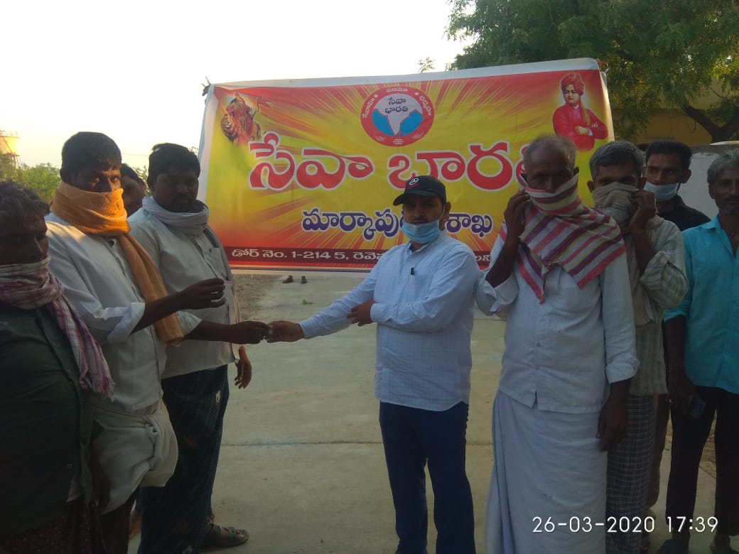 * తూ. గో జిల్లా, ముమ్మిడివరం మండలం, చినకొత్త లంక లోని నిరు పేద కుటుంబాలకు సేవా భారతి కార్యకర్తలు నిత్యావసర వస్తువుల వితరణ చేశారు. కరోనాపై అవగాహన కల్పిస్తున్నారు. కావలసిన వారికి మెడిసిన్స్ అందిస్తున్నారు. అందరూ ఇంటిలోనే ఉండాలని సూచిస్తున్నారు.