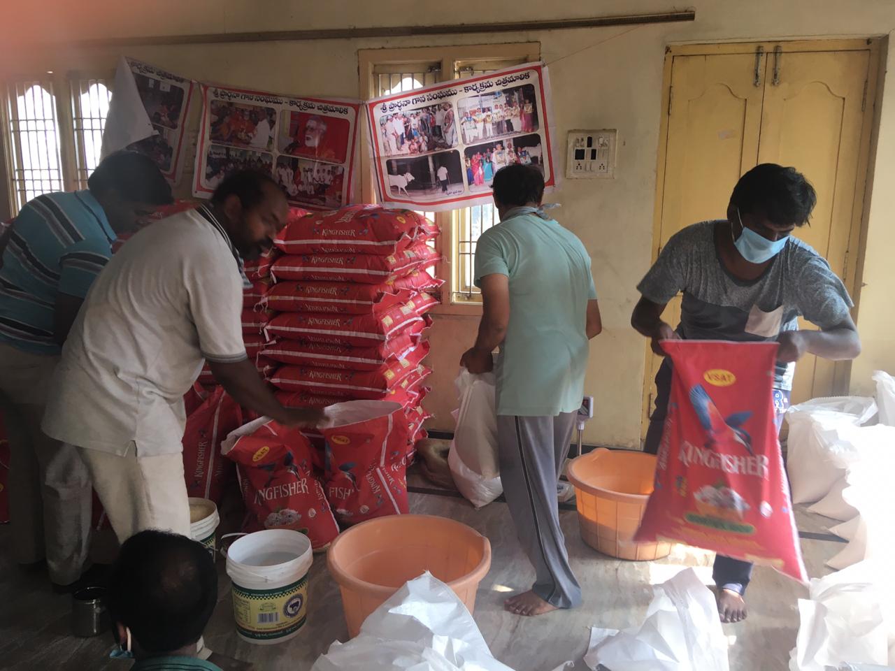 నిత్యావసరాల కిట్లను సిద్ధం చేస్తూ…