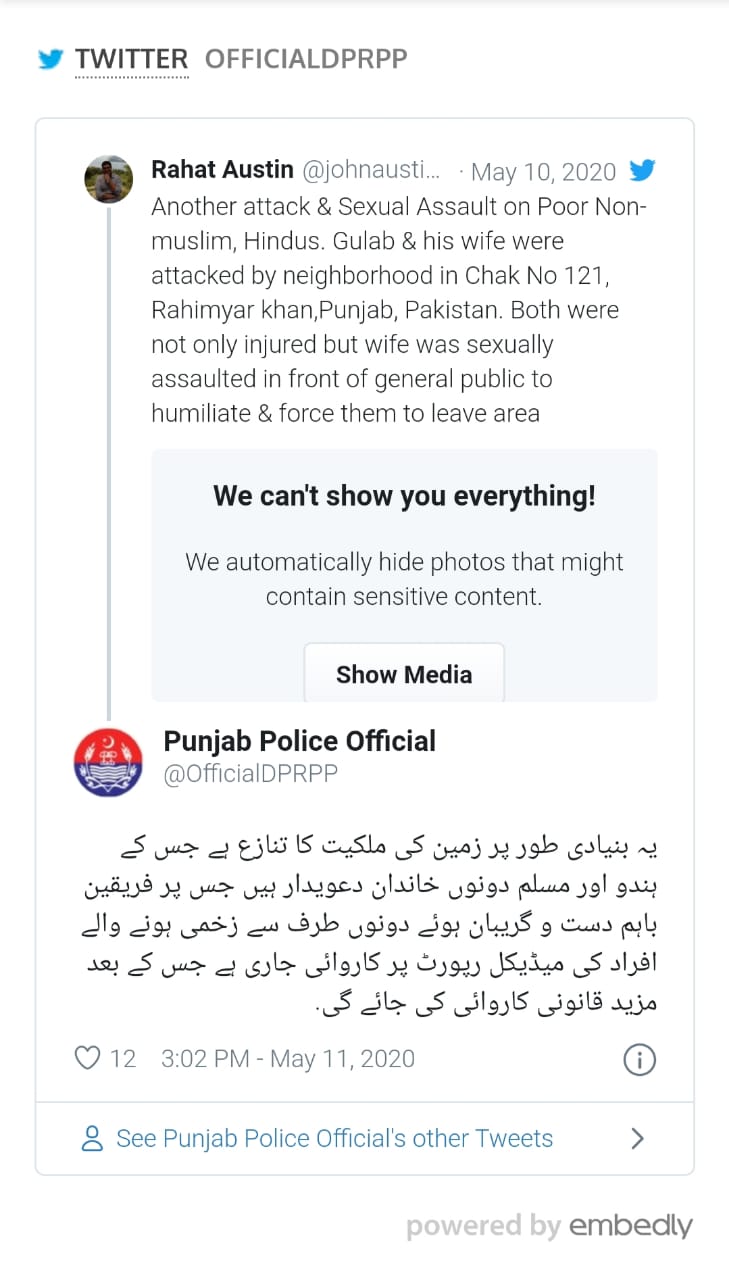 మరొక పాకిస్తానీ మూకల దాడిలో ఒక ముస్లిమేతర మహిళను ఆమె కుటుంబ సభ్యుల ముందే లైంగికంగా వేధించడమే కాకుండా, ఆ కుటుంబ సభ్యులపై దారుణంగా దాడి చేసి వారిని వారి ఇంటి నుంచి వెళ్లగొట్టారు.