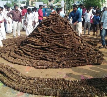 సంస్కృతీ, సంప్రదాయం ఉట్టిపడేలా భోగి పిడకలతో భారీ దండ తయారీ!