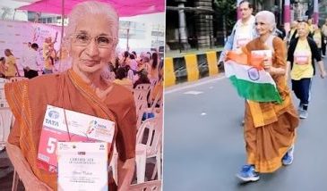 త్రివర్ణ పతాకాన్ని పట్టుకుని మారథాన్ రేస్ లో పరిగెత్తిన 80ఏళ్ల బామ్మ!