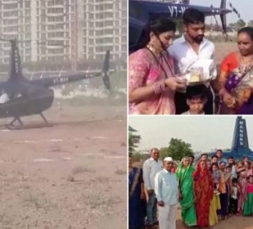 మనవరాలిని హెలికాప్టర్లో తెచ్చుకున్న రైతు